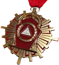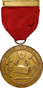 In 1951, the General Grand Chapter of Royal Arch Masons established the Distinguished Service Medal in Bronze to be awarded in recognition of the recipient’s outstanding and meritorious service to Royal Arch Masonry other than serving as a Grand Chapter Officer. The Bronze Medal corresponds to the Cryptic Mason of the Year for the General Grand Council and the Knight Templar Cross of Honor for Commandery’s Grand Encampment. It cannot be awarded to a Past Grand High Priest or a Companion serving as one of the “progressive” elected Grand Chapter Officers. Only one may be awarded each year per Grand Chapter.